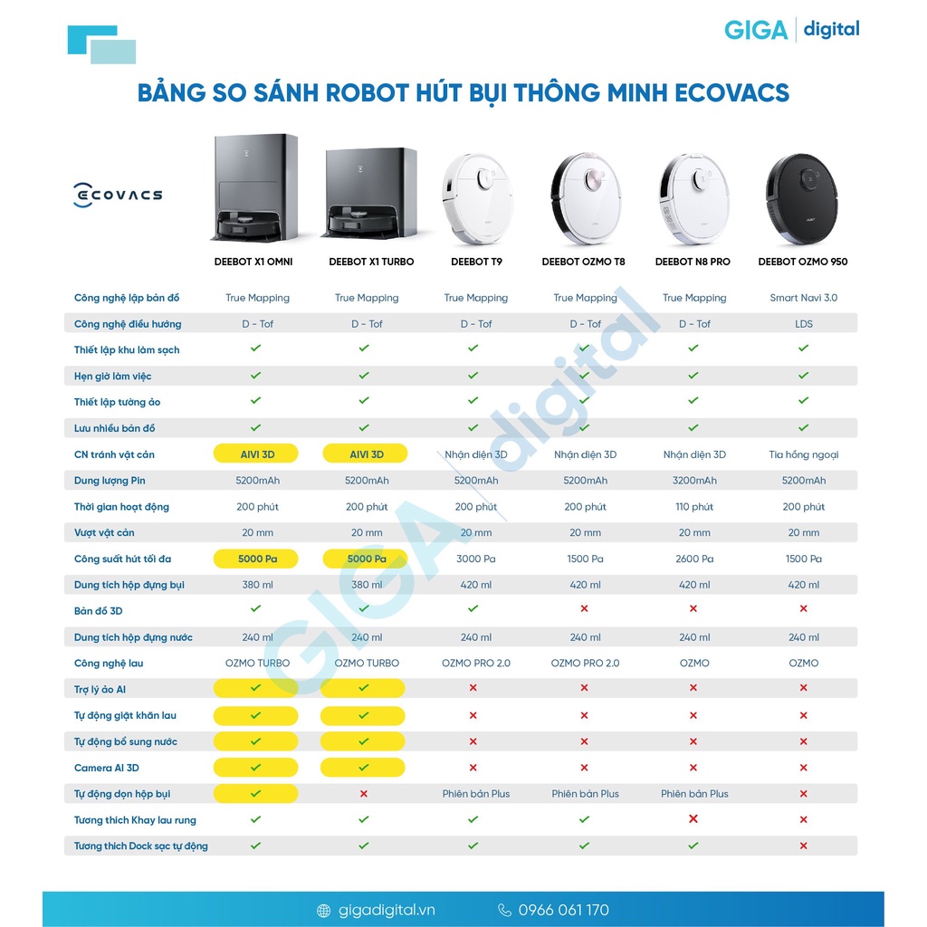 Giga DigitalRobot hút bụi lau nhà ECOVACS Deebot T9 là robot hút bụi lau nhà đầu tiên được trang bị chức năng kép hút bụi - lau nhà cùng với bộ lọc không khí di dộng.