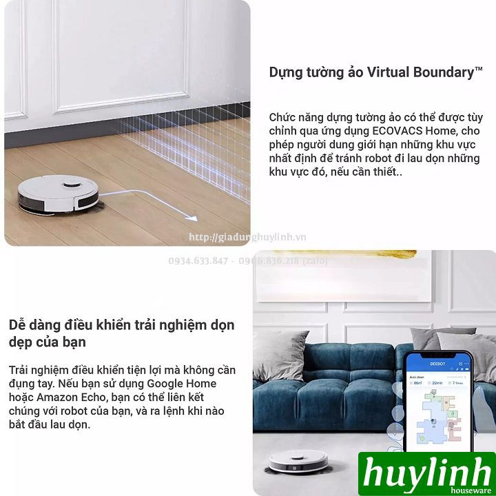 - Dựng tường ảo Virtual Boundary trong ứng dụng Ecovacs Home: không cho phép robot đi qua khu vực giới hạn