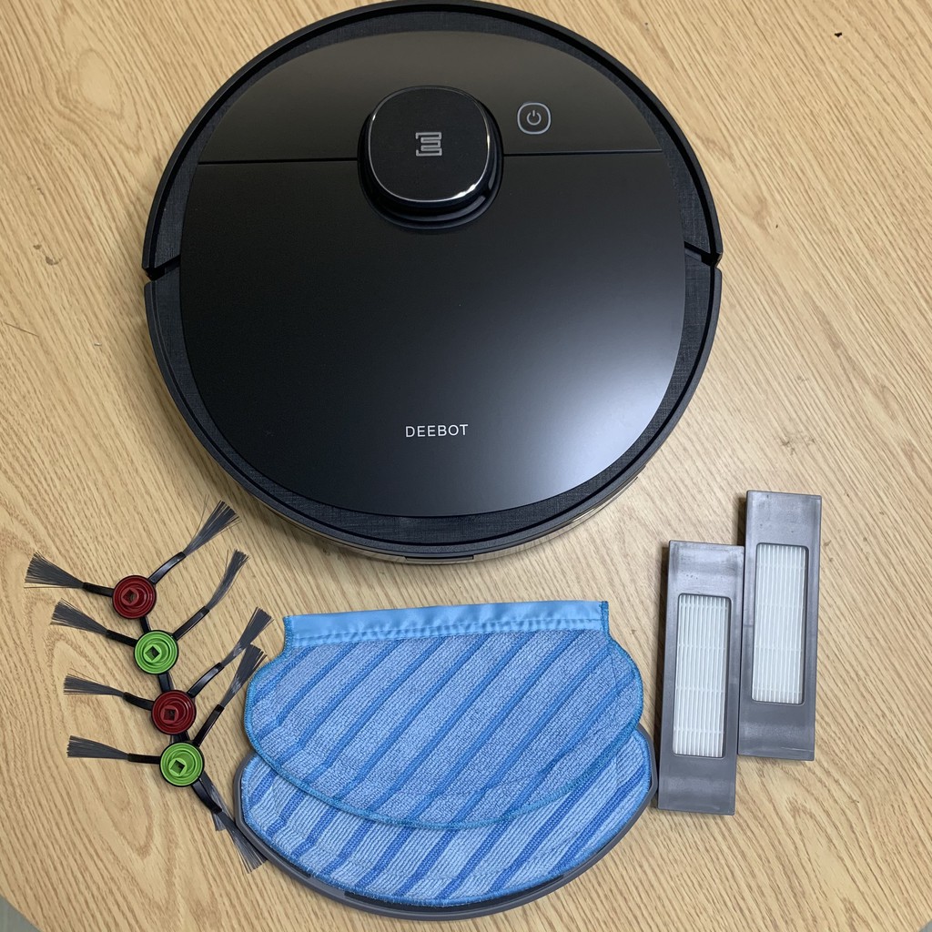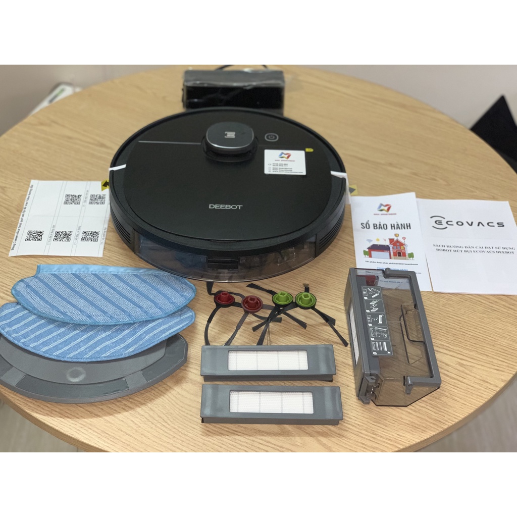 - Bộ sản phẩm gồm: Robot, 1 chổi chính, 2 đôi chổi cạnh; 2 màng lọc bụi mịn Hepa, 2 khăn lau vải, 1 dock sạc; 1 bình lau ướt