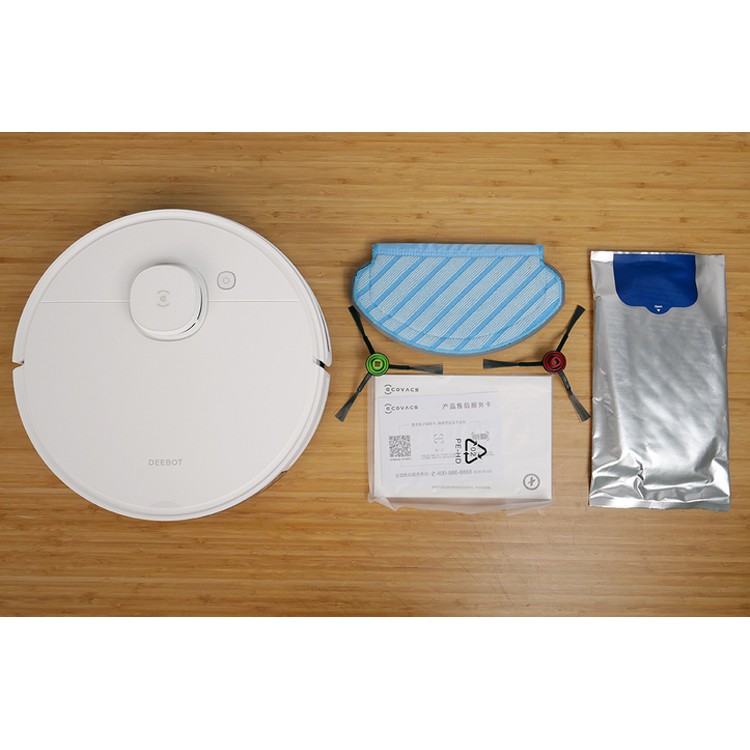 - Phụ kiện bao gồm: Robot, hộp bụi, chổi cạnh, chổi giữa, lọc bụi, đế sạc