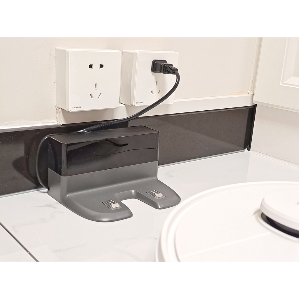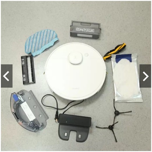Phụ kiện bao gồm: Robot, hộp bụi, chổi cạnh, chổi giữa, lọc bụi, đế sạc