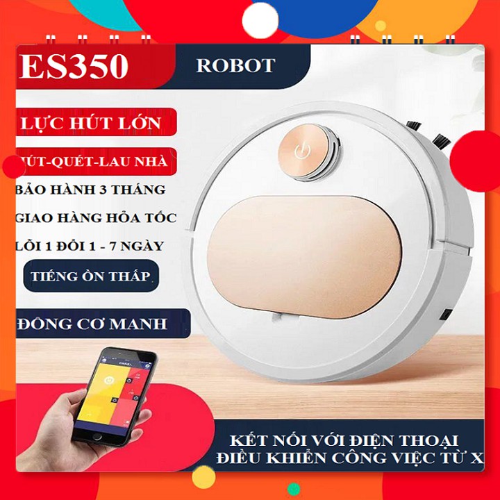 Robot hút bụi lau nhà, máy hút bụi thông minh tự động 3in1 điều khiển qua app điện thoại. Đây là sản phẩm với mức giá quá bình dân mà lại sở hữu nhiều tính năng vượt trội. Các chị em nội trợ đừng bỏ lỡ em osin đáng yêu này nha. Hãy để em ấy giúp việc dọn dẹp nhà cửa chỉ với một nút chạm thôi nào.Tính năng ưu việt của robot hút bụi bụi lau nhà ES350 app: