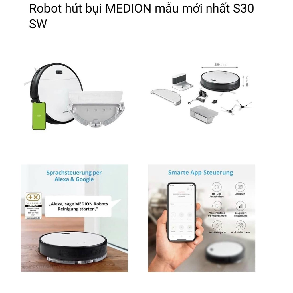 Robot Lau Nhà, Hút Bụi Medion MD20021 - Mẫu mới nhất của Medion (10/2021)Thông số Robot hút bụi lau nhà Medion MD20021