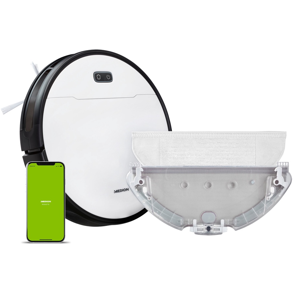Thiết Bị Điện Gia Dụng > Thiết bị điện gia dụng nhỏ > Máy hút bụi & Thiết bị làm sạch sàn || Robot hút bụi lau nhà Medion MD20021, thời lượng pin 140 phút, có điều khiển qua ứng dụng MD 20021Còn hàng