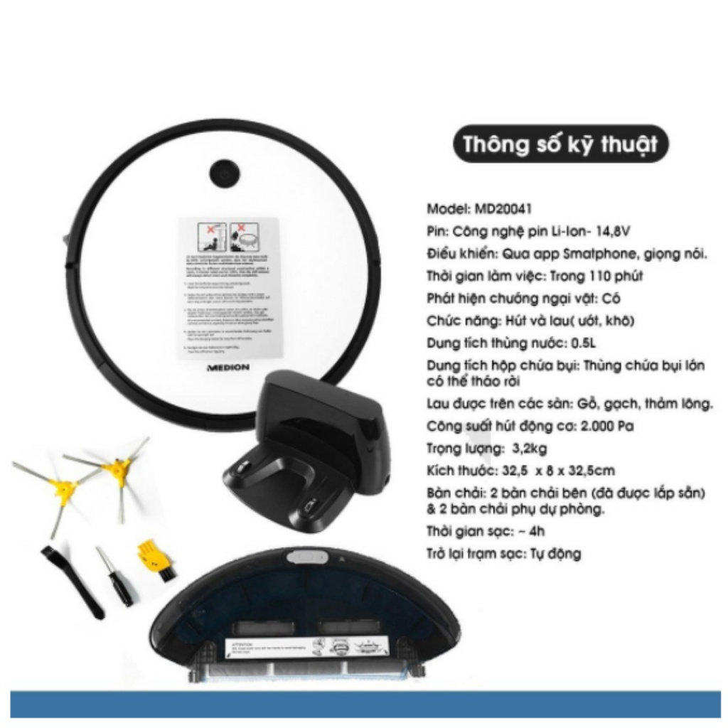 Robot hút bụi lau nhà Medion MD20041 Intelligent 2 in 1 công nghệ cao thế hệ mới [GEXHOME Hàng Đức]