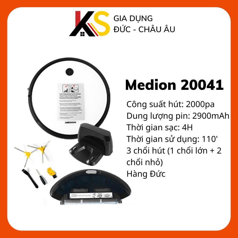 Robot Hút Bụi Lau Nhà Medion MD20041 công nghệ cao thế hệ mới gồm 3 chổi quét, pin khỏe 2900mAh, lực hút 2000pa