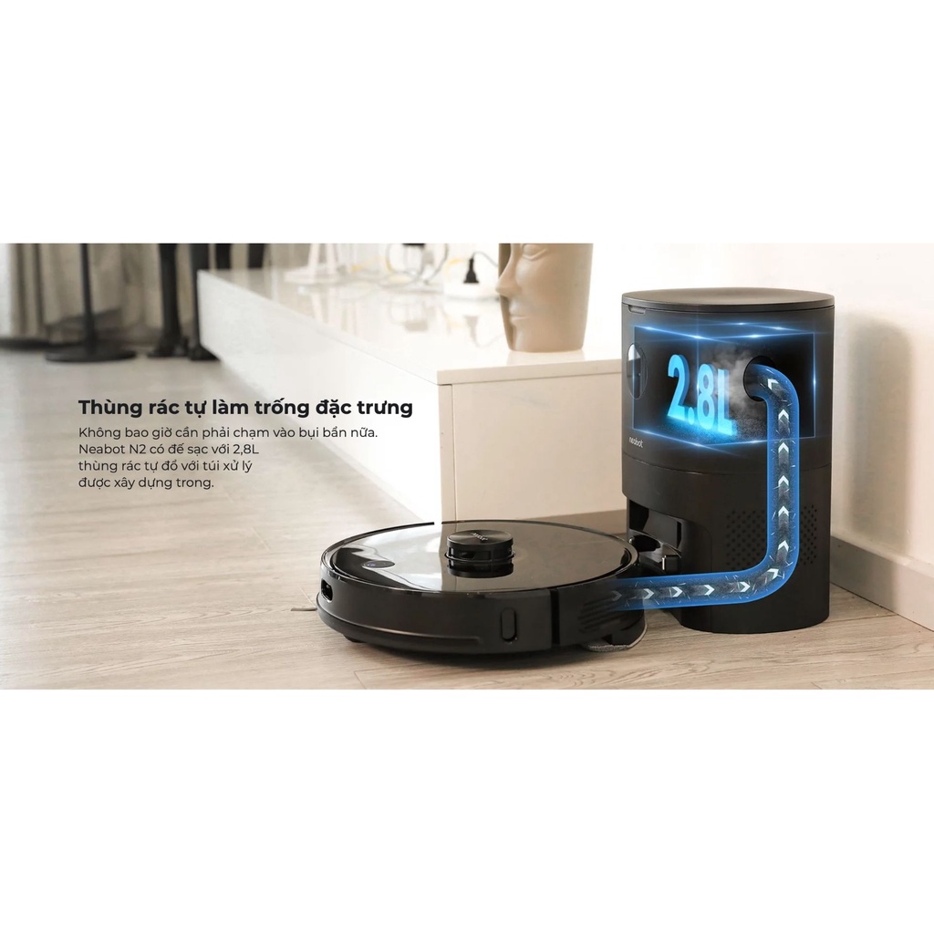❤️️ NEABOT N2 2021 sở hữu thiết kế trạm sạc kết hợp hút rác tự động thông minh.- Nhờ công nghệ hút rác tự động và chứa rác bụi độc đáo của NEABOT N2 2021 bạn hoàn toàn yên tâm khi vắng nhà nhiều ngày bởi robot đã được lập trình ưu việt cho chu trình hút và đổ rác tự động lên đến 4 tuần. Giải phóng hoàn toàn khả năng vệ sinh hộp rác hàng ngày như các model thông thường. Cùng với đó là khả năng khử mùi, kháng khuẩn cũng được nhà sản xuất tích hợp trong trạm sạc thông minh.