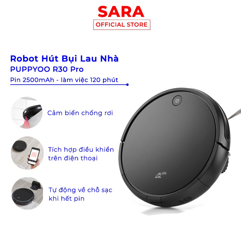 Robot hút bụi lau nhà PUPPYOO R30 PRO nhập khẩu chính hãng,điều kiển bằng điện thoại, tự động sạc, pin trâu lực hút mạnh