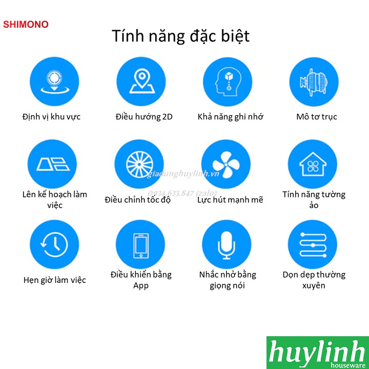 Robot hút bụi lau nhà Shimono ZK808 cao cấp với linh kiện đc nhập khẩu trực tiếp tại Nhật, lăp ráp tại HongKong với khả năng lau và hút vượt trội.Huy Linh phân phối và bảo hành chính hãng tại Shimono Việt Nam.