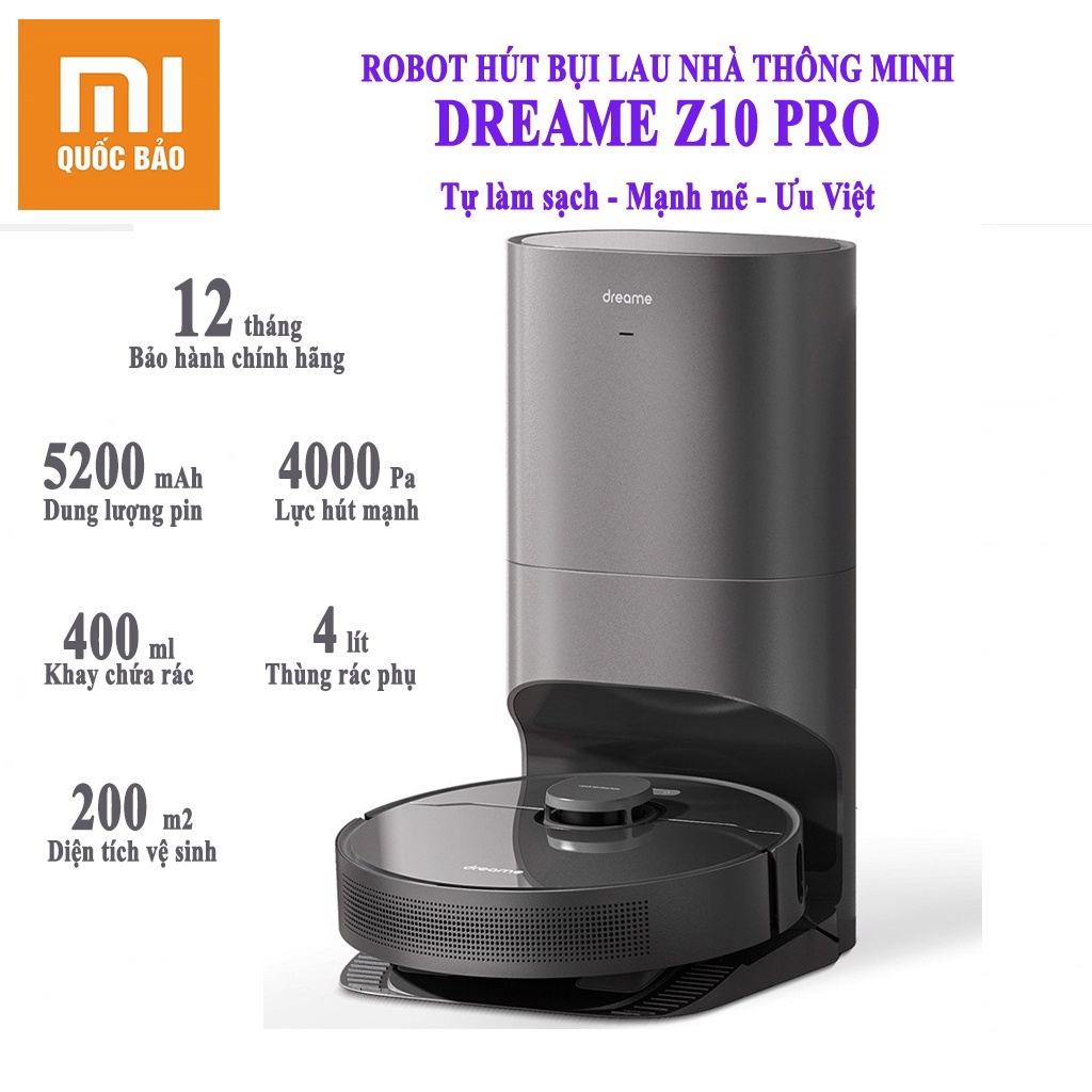 Thiết Bị Điện Gia Dụng > Thiết bị điện gia dụng nhỏ > Máy hút bụi & Thiết bị làm sạch sàn || Robot hút bụi lau nhà thông minh Xiaomi Dreame Z10 Pro- Kết nối app Mihome, Hàng chính hãng, Bảo hành 12 thángCòn hàng