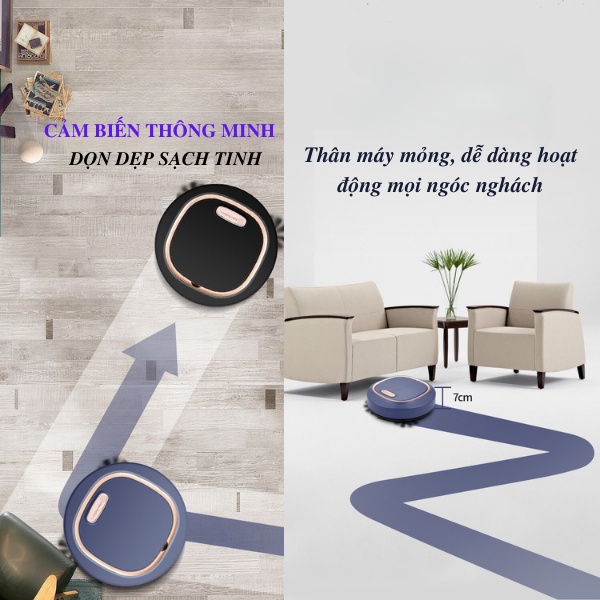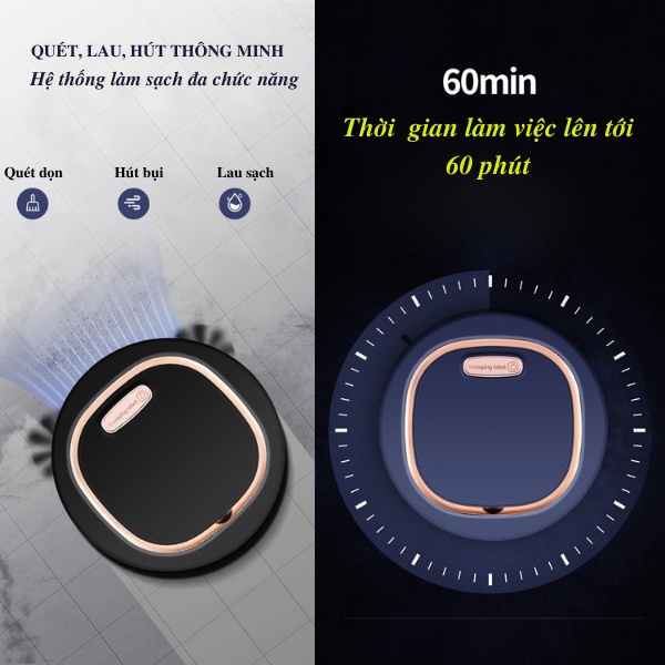 Dung lượng pin lớn 1200 mAh, cho phép làm sạch thời gian, độ cao máy 6cm có thể được sử dụng trong bất kỳ phòng nào, đủ nhỏ gọn để đặt dưới ghế sofa hoặc giường ở nhà.