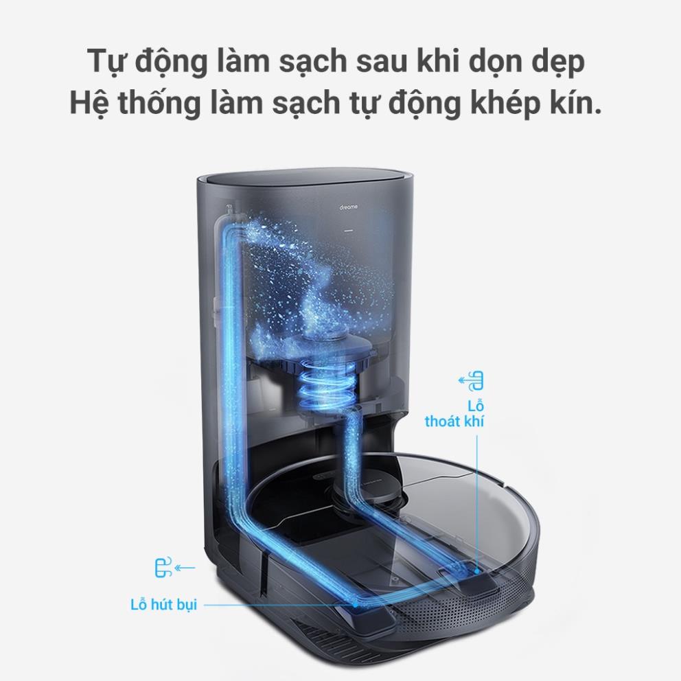 Điểm nhấn của Dreame Bot Z10 Pro so với phần còn lại của thế giới máy hút bụi tự hành thông minh là khả năng tự làm sạch. Bạn không đọc nhầm đâu, là khả năng tự làm sạch, sau khi kết thúc chu trình làm việc, dọn dẹp và lau sàn, thay vì bạn phải đổ bỏ đi phần rác và bụi trong khay chứ. Trạm sạc của Dreame Bot Z10 Pro được trang bị thêm bộ làm sạch thông minh hoàn toàn tự động, dung tích của phần chứa rác, bụi lên đến 4 lít. Như vậy, mỗi 65 ngày bạn mới cần phải đổ rác 1 lần.