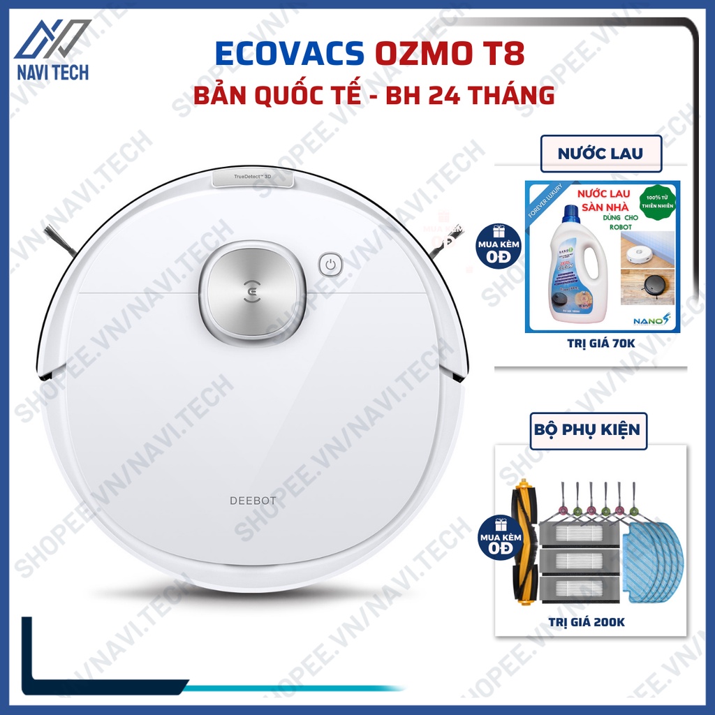 [Mã ELHA03 giảm 5% đơn 300K] Robot Hút Bụi Lau Nhà Thông Minh Ecovacs Deebot OZMO T8 - Bản Quốc Tế - Bảo Hành 24 Tháng