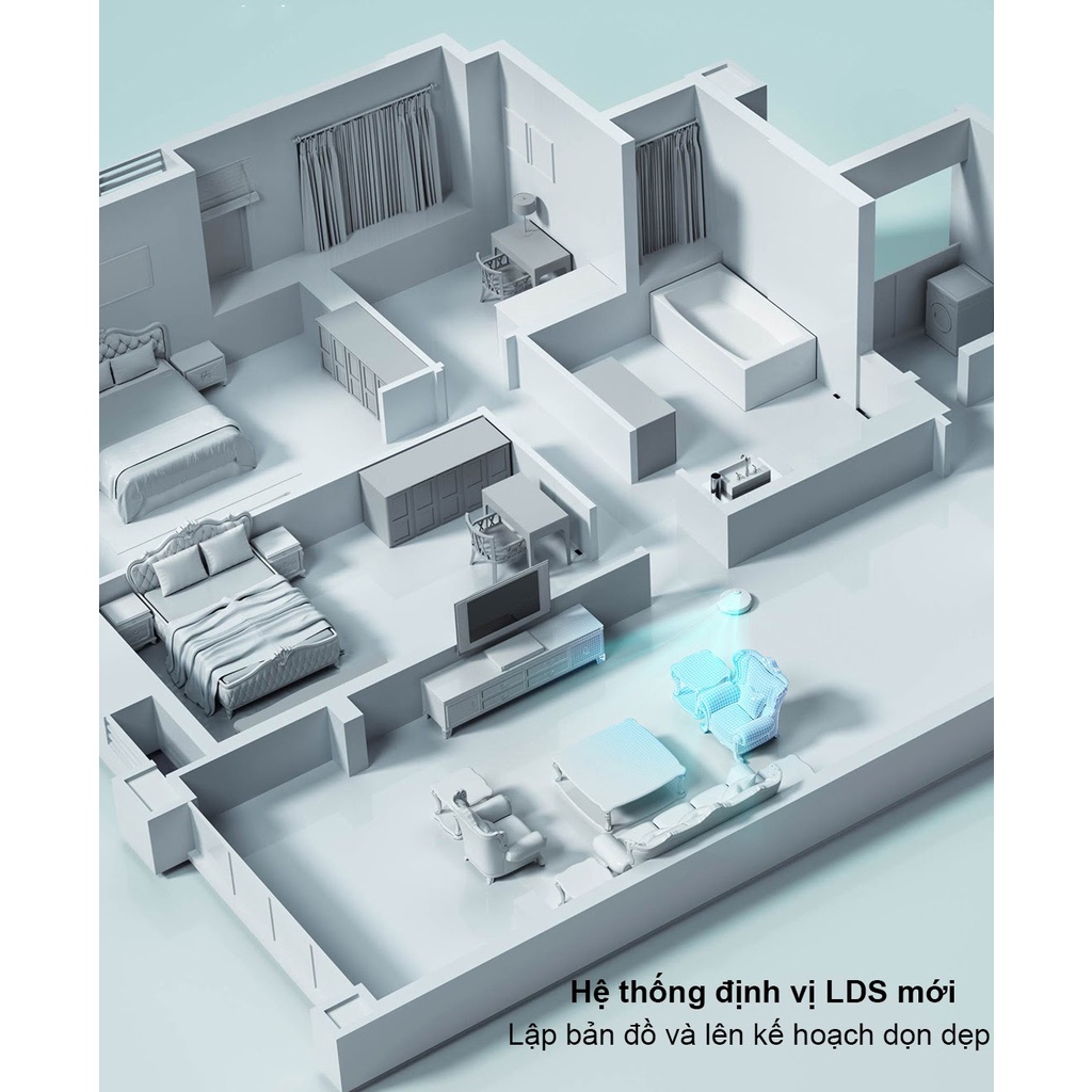 Ngoài ra, với việc tích hợp 8 cảm biến độc lập ToF, robot có thể hỗ trợ tránh chướng ngại vật linh hoạt trong quá trình di chuyển, hạn chế sự va chạm và tránh bị kẹt lại tại các gầm tủ, gầm ghế,… khi dọn dẹp.