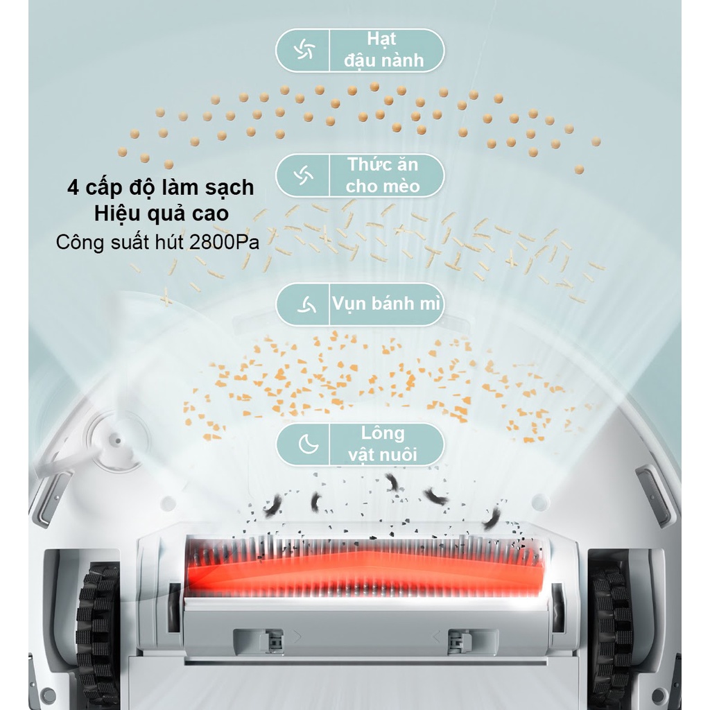 Robot hút bụi lau sàn Mijia MJSTP được trang bị động cơ hoạt động mạnh mẽ với công suất hút lên đến 2800Pa, hỗ trợ làm sạch hiệu quả với 4 tốc độ đi kèm, dễ dàng dọn sạch mọi bụi bẩn cứng đầu, từ hạt đậu nành, thức ăn cho mèo,… đến vụn bánh mì, lông động vật,…
