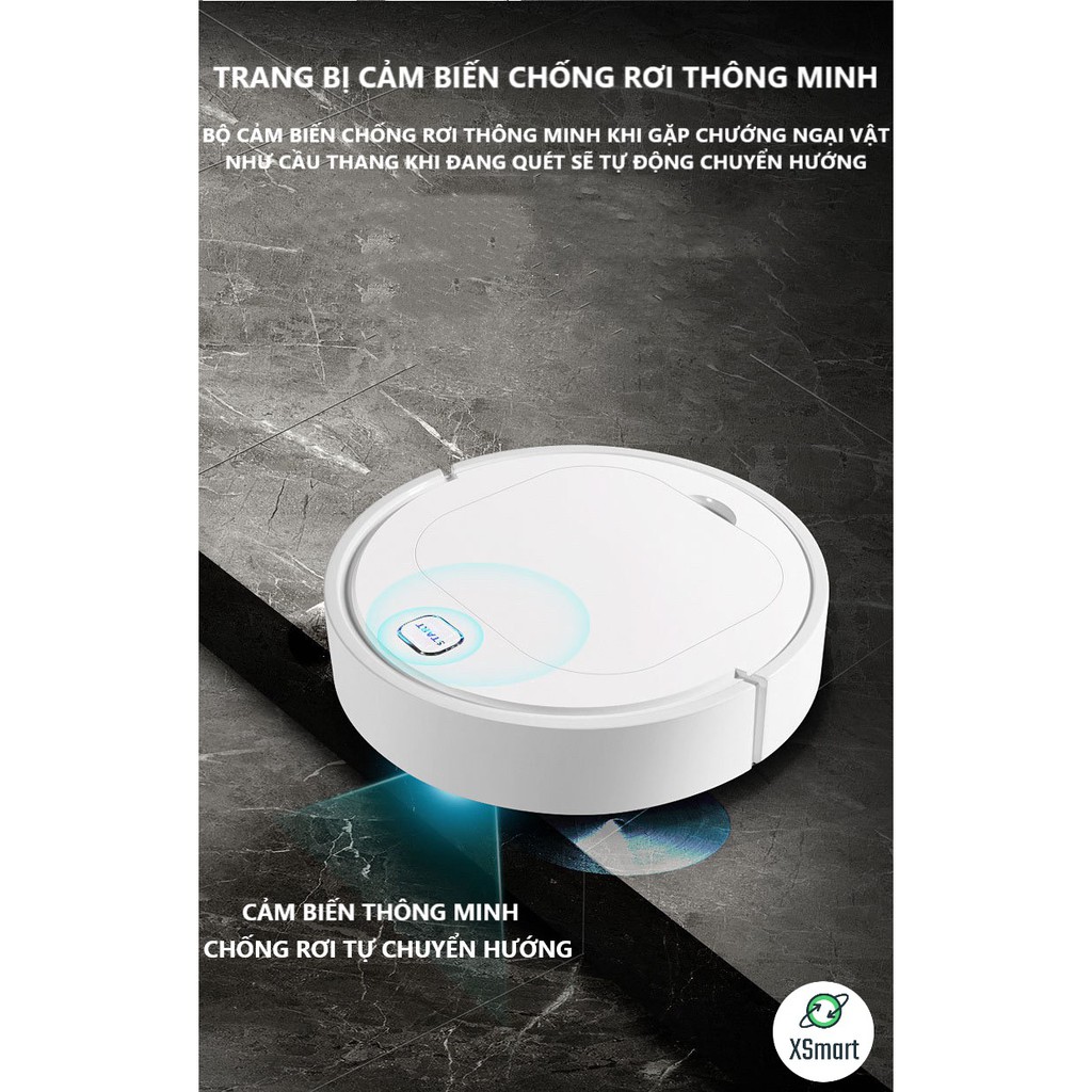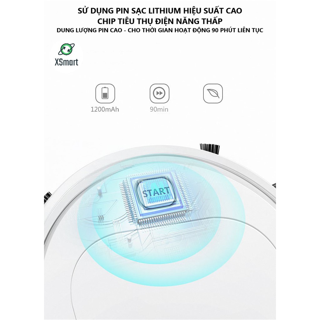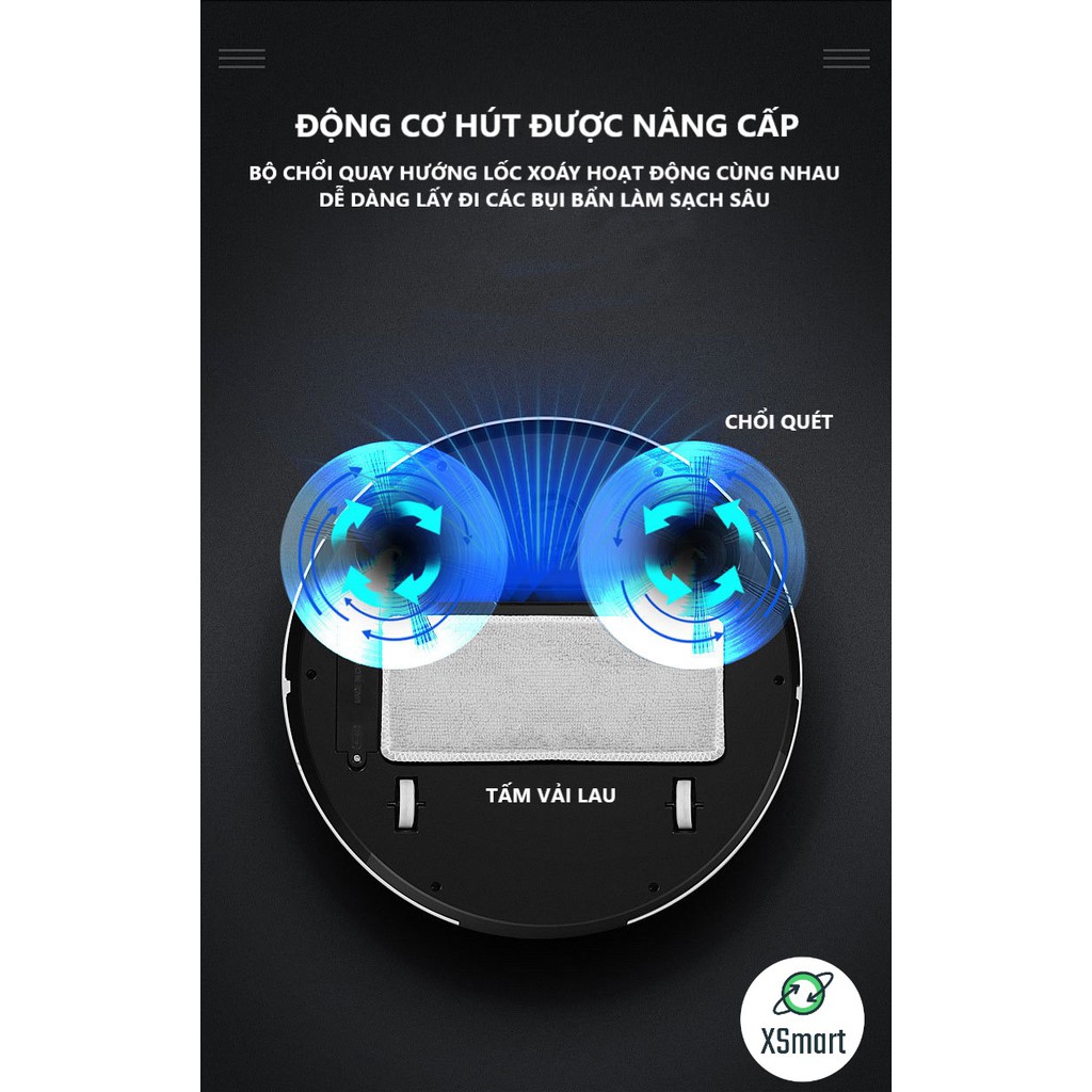 Robot Hút Bụi Lau Nhà Thông Minh Nâng Cấp Tự Động Di Chuyển, Pin Sạc, Máy Hút Mạnh, Rô Bốt Kèm Dẻ Lau