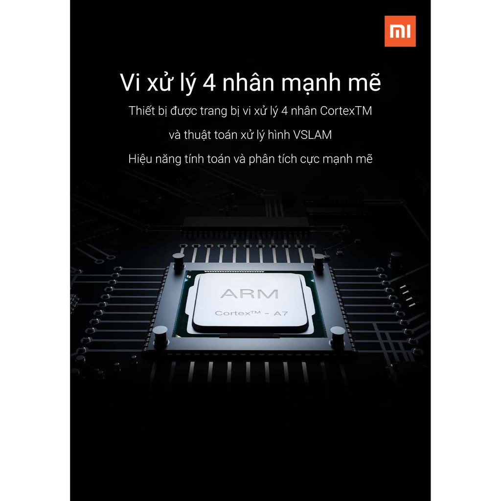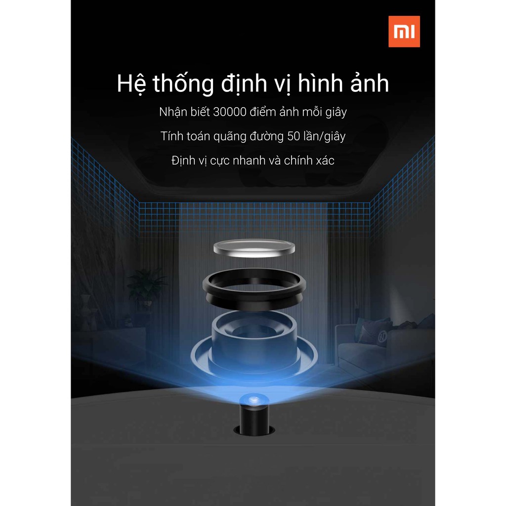 Mi Robot Vacuum Mop được trang bị hệ thống định vị bằng hình ảnh và xử lý bằng thuật toán VSLAM. Hình ảnh thu về sẽ được vi xử lý 4 nhân CortexTM phân tích và từ đó tái tạo lại hình ảnh 2 chiều và 3 chiều và không gian căn phòng bạn. Đây chính là điểm làm nên giá trị "thông minh" khác biệt của robot hút bụi lau nhà Xiaomi so với các sản phẩm khác trên thị trường.