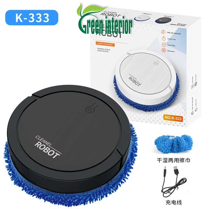 Robot hút bụi lau nhà tự động, robot mini lau sàn nhà thông minh 2 tính năng lau khô ướt dùng pin sạc K333