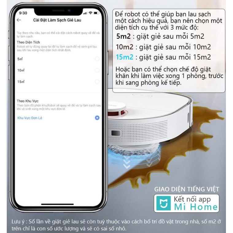 - Tự động trở về Dock sạc để làm sạch khăn lau