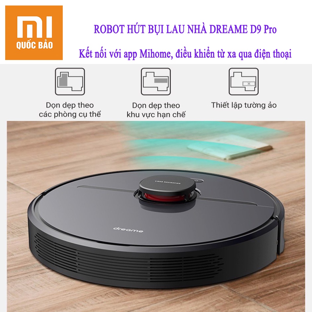Thiết Bị Điện Gia Dụng > Thiết bị điện gia dụng nhỏ > Máy hút bụi & Thiết bị làm sạch sàn || Robot hút bụi lau nhà Xiaomi Dreame D9/ Dreame D9 PrO- Diện tích làm việc 250 m2, lực hút 3000 PA, Bản quốc tếCòn hàng