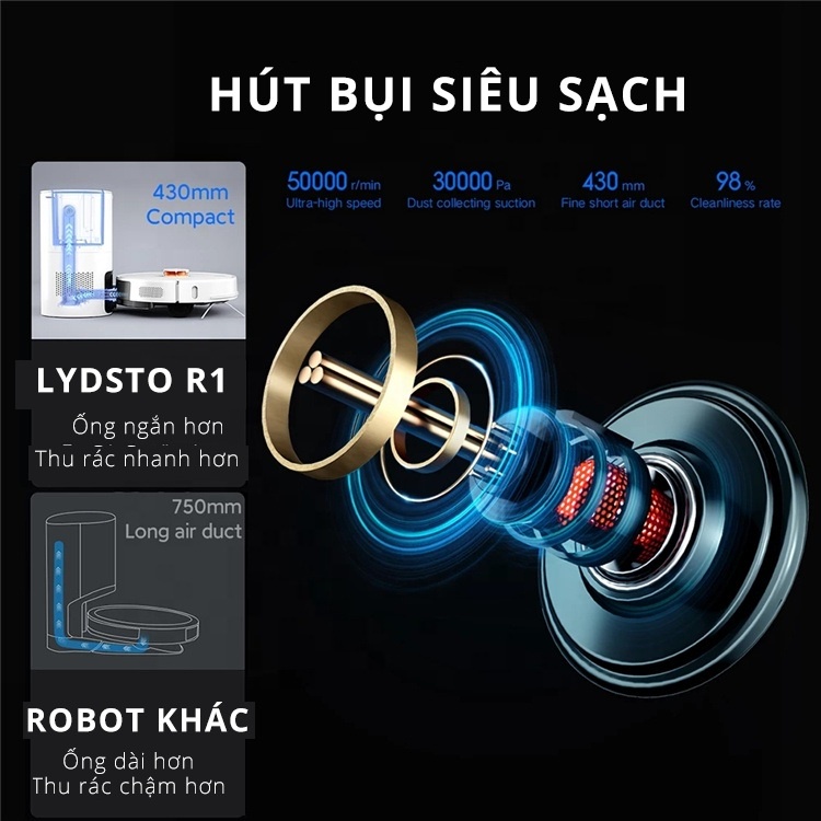 Thiết Bị Điện Gia Dụng > Thiết bị điện gia dụng nhỏ > Máy hút bụi & Thiết bị làm sạch sàn || Robot hút bụi lau nhà Xiaomi Lydsto R1 với hộp đựng bụi tự động đổ rác kết hợp sạc thông minhCòn hàng