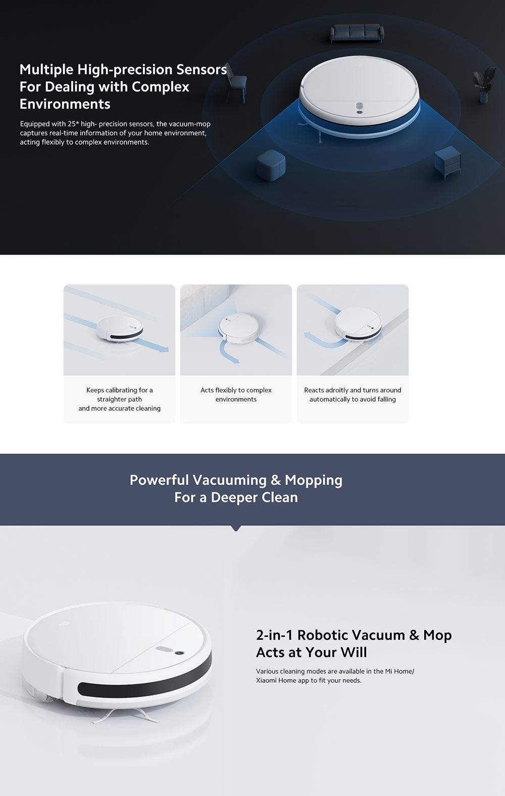 Robot hút bụi Xiaomi Mop 2 Lite sử dụng nhiều cảm biến chính xác cao giúp robot: