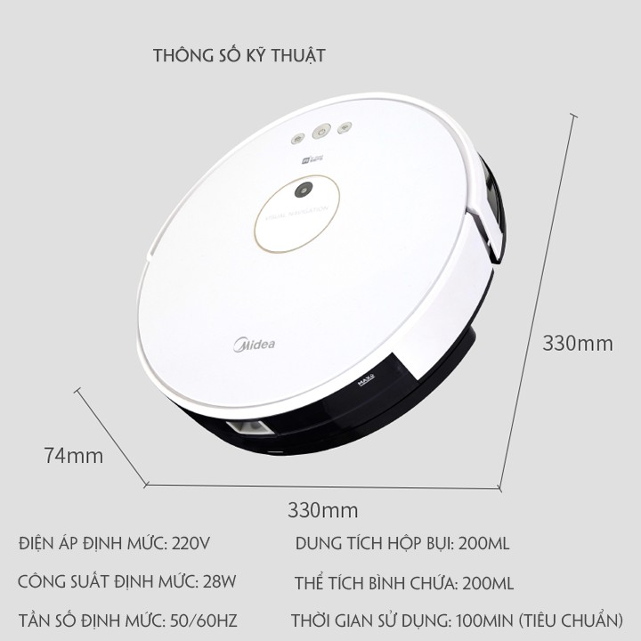 Robot hút bụi media M4 New - Máy hút bụi lau nhà thông minh, Điều khiển băng điện thoại