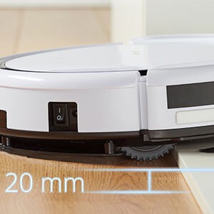 - Khoảng cách tối thiểu từ tường khi làm sạch: Các cảm biến khác nhau đảm bảo đường làm sạch tối ưu : làm sạch dưới đồ đạc (8cm), tối ưu hóa lông động vật và dị ứng.