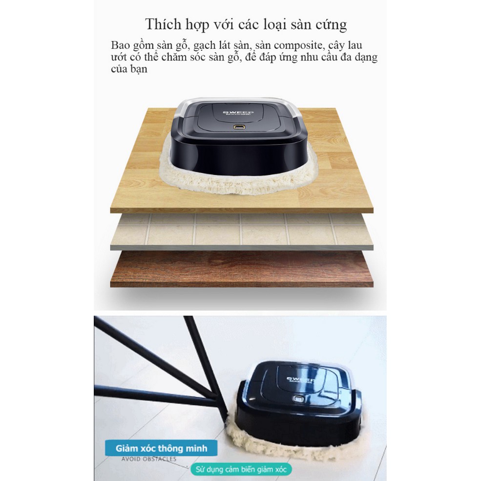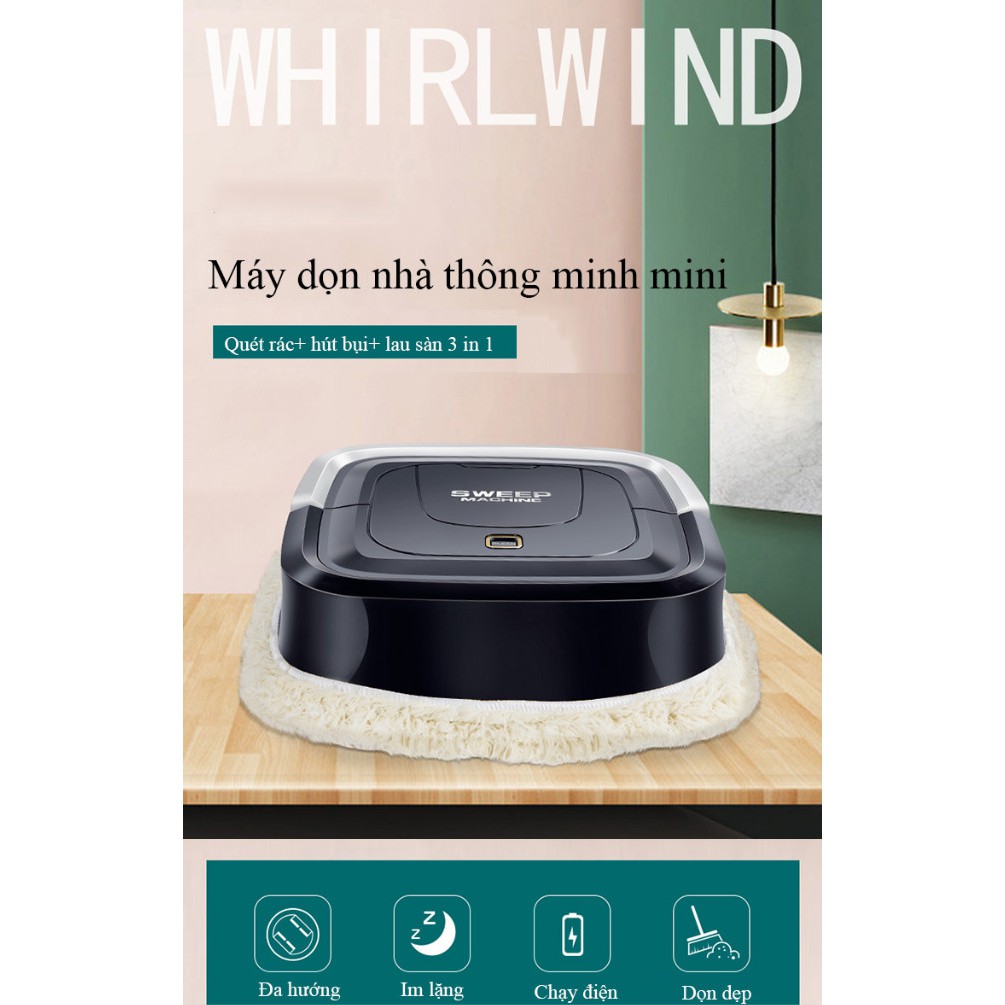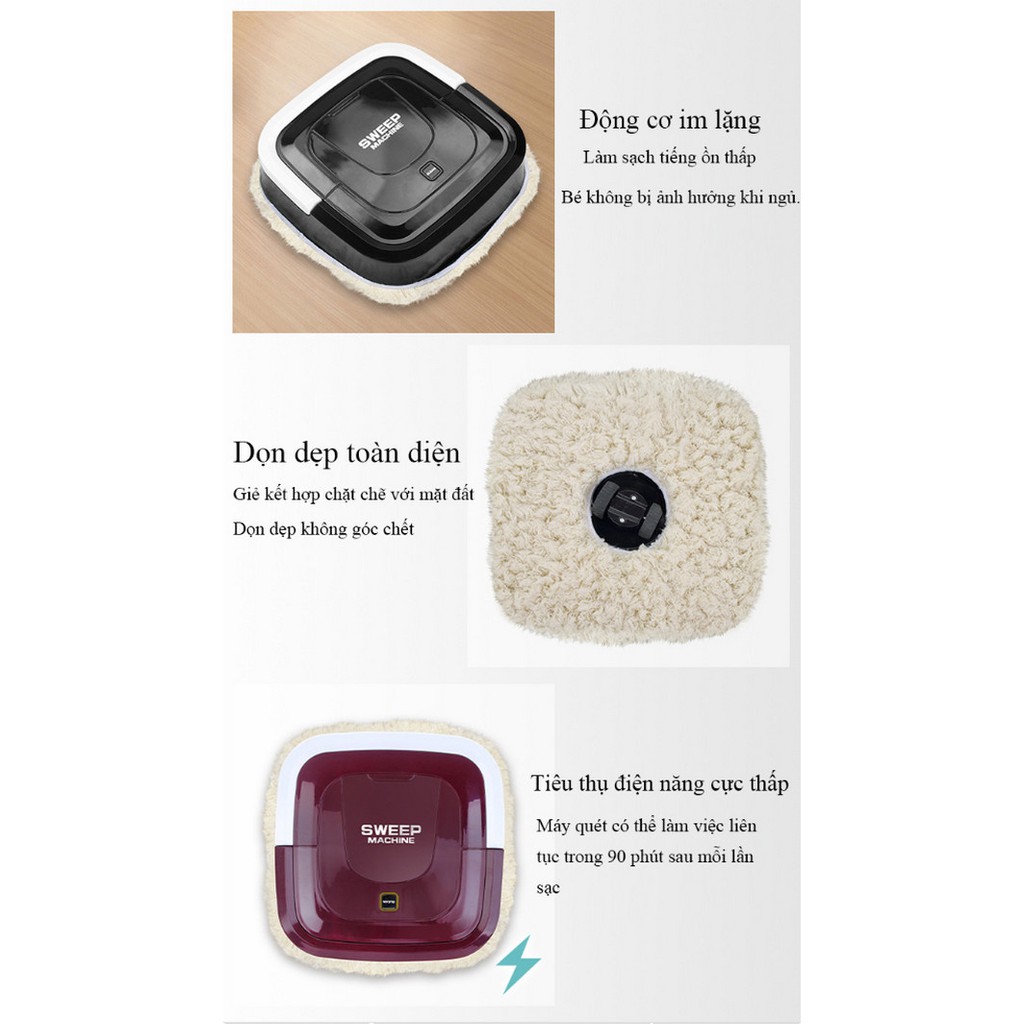 Robot hút bụi mini Sweep Machine dọn nhà thông minh (quét dọn+ hút bụi+ lau sàn) - Home and Garden