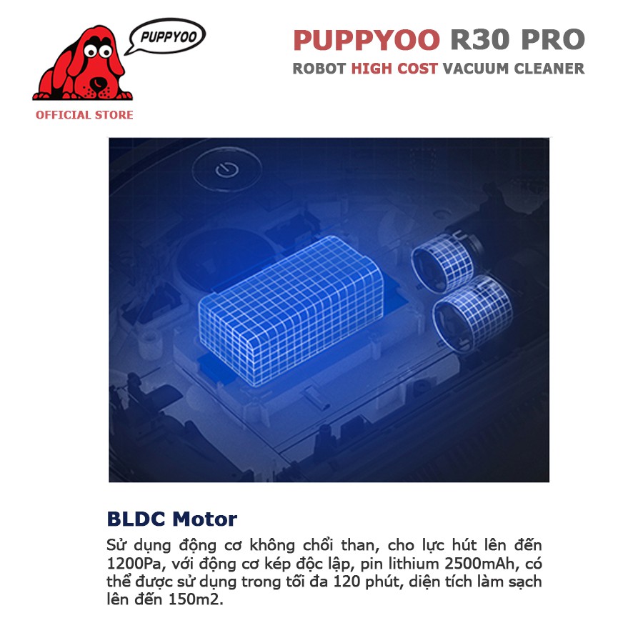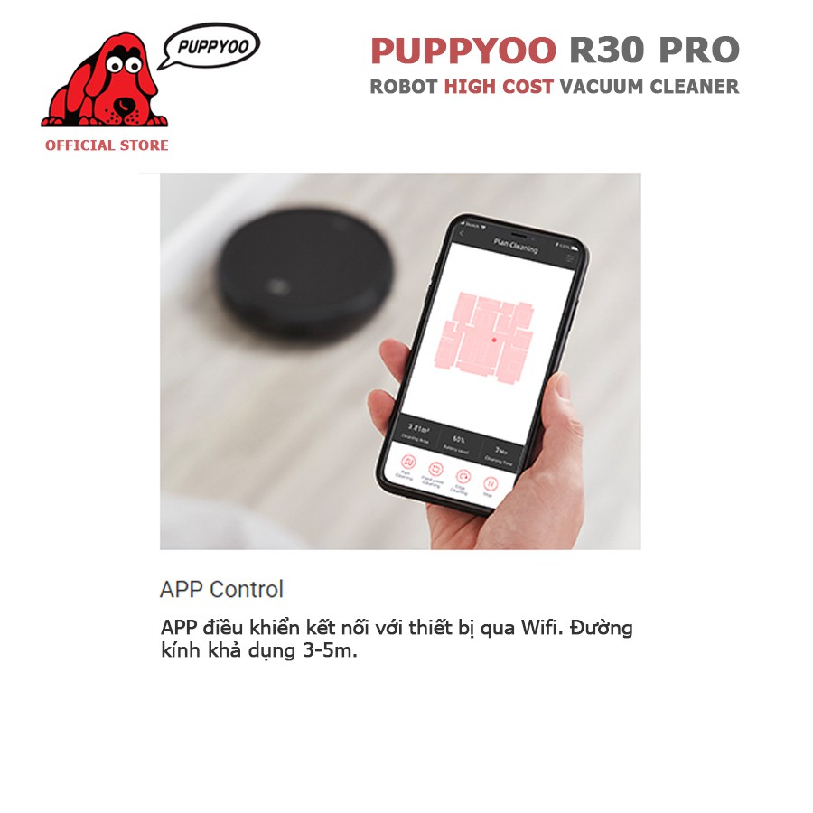 Robot hút bụi PUPPYOO R30-Pro cực linh hoạt lực hút1200Pa hút cực mạnh cực êm diện tích hoạt động lên đến 150m2