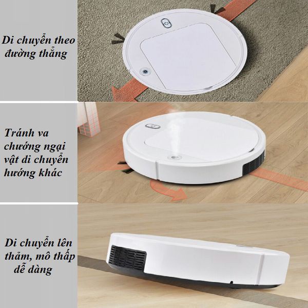 Robot với 3 Chế độ làm sạch: quét, hút và lau. Nó có thể tránh chướng ngại vật một cách thông minh, phù hợp với nhiều loại môi trường, gỗ, gạch lát, sàn đá cẩm thạch, v.v.
