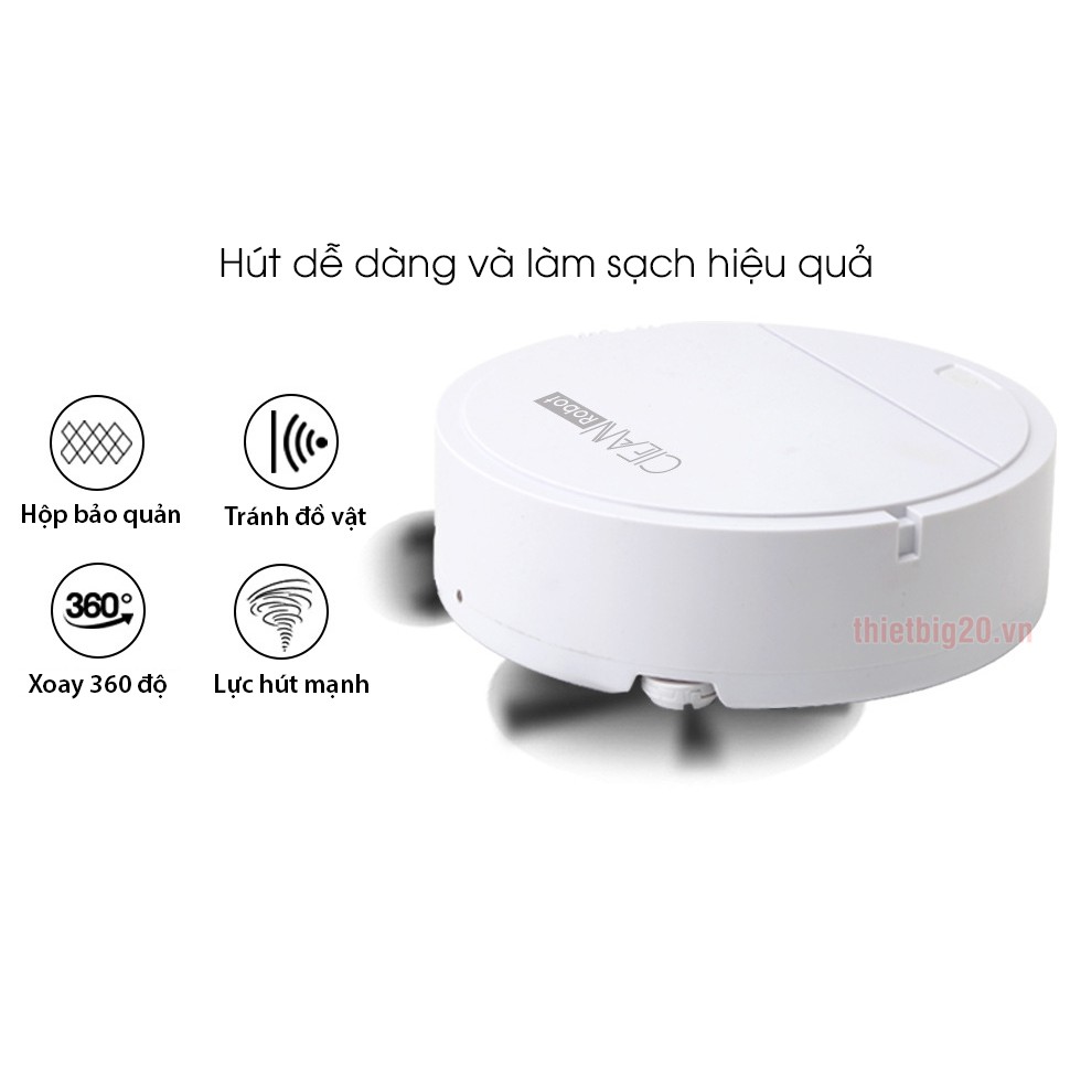 Robot hút bụi tự động cảm ứng mặt đất Clean Robot có khả năng xác định vị trí và rẽ hướng tự động để làm sạch sàn nhà và cả những nơi góc, ngóc ngách nhanh chóng và dễ dàng