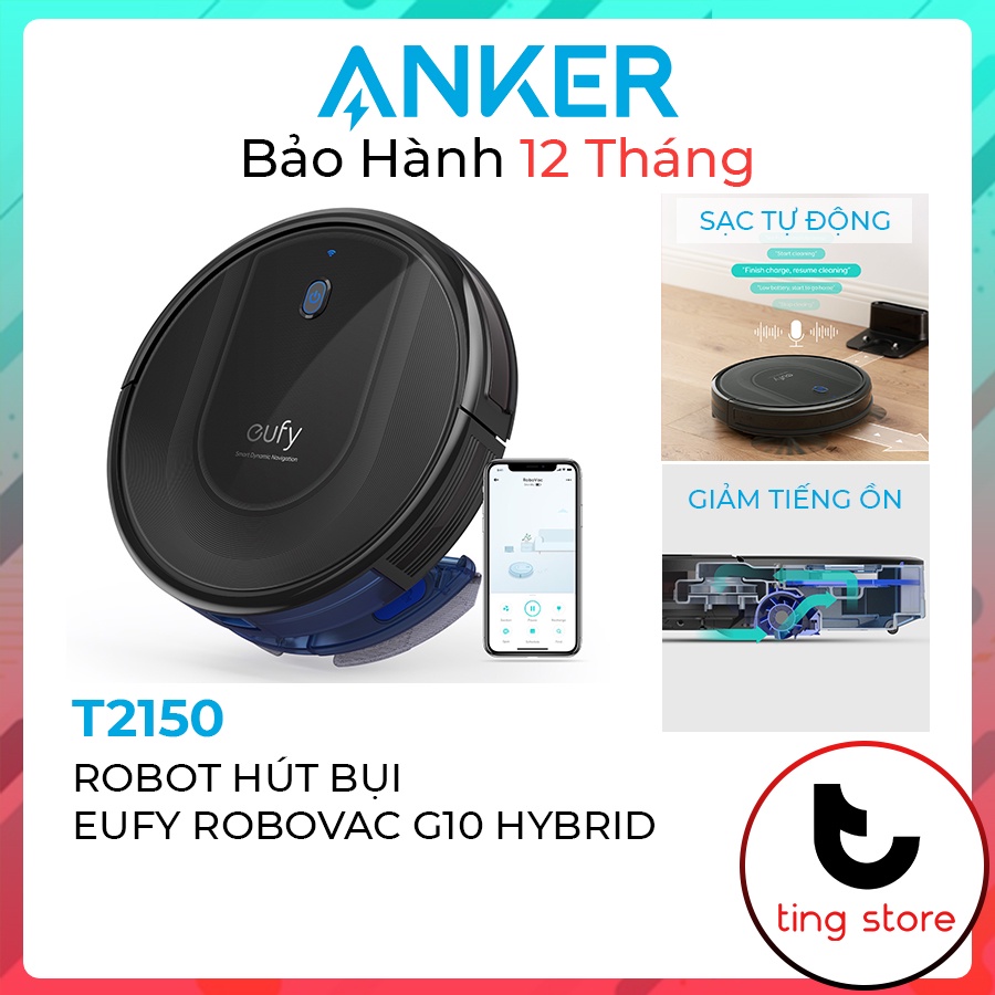 Robot Hút Bụi Thông Minh Anker Eufy Robovac G10 Hybrid - Hút và Lau - Tự Động Sạc - T2150Eufy RoboVac G10 Hybrid là Robot hút bụi có khả năng điều hướng tự động với chức năng quét và lau 2 trong 1.