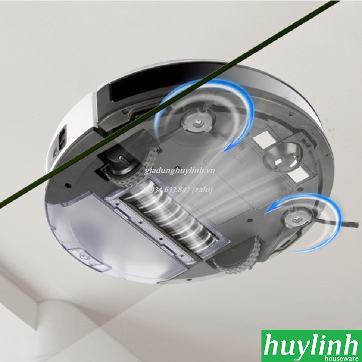 - Robot hút bụi Ecovacs Deebot 600 với bàn chải làm sạch cạnh và bàn chải chính hình chữ V, Deebot đồng thời quét, nân và hút bụi torng 1 lần duy nhất.