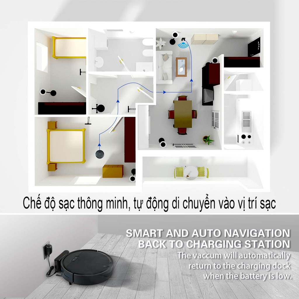 - Chế độ chạy thông minh theo hình kẻ ô giảm thiểu khả năng robot chạy trùng lặp những khu vực đã quét rồi, giảm thời gian robot phải hoạt động, tối ưu thời gian pin, tăng hiệu xuất làm sạch lên tới 99%