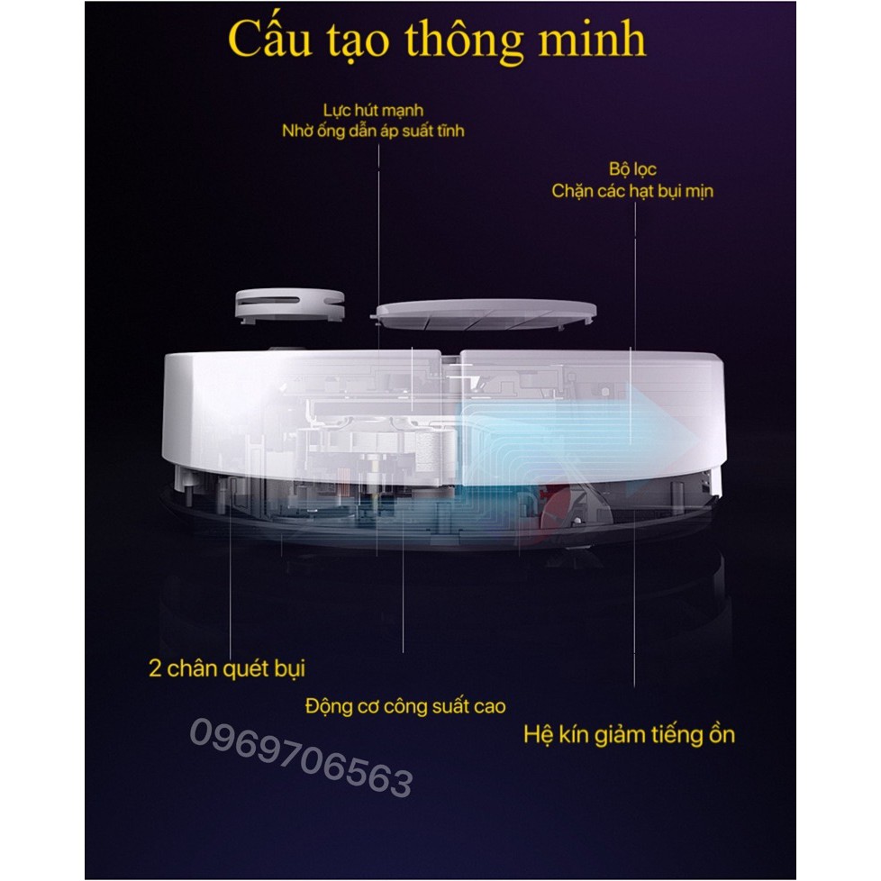 Với công suất cao và lực hút khá mạnh, robot có thể hút được cả mọi bụi bẩn trong nhà, kể cả những mẩu giấy, tóc và bụi
