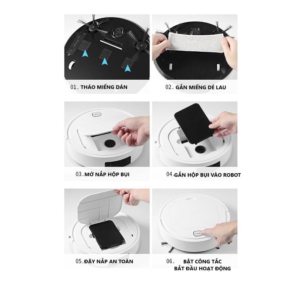 ✔️ Tính năng 3in1 : Quét, hút, lau chỉ với một nút bấm.