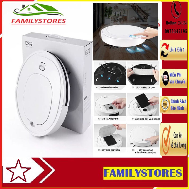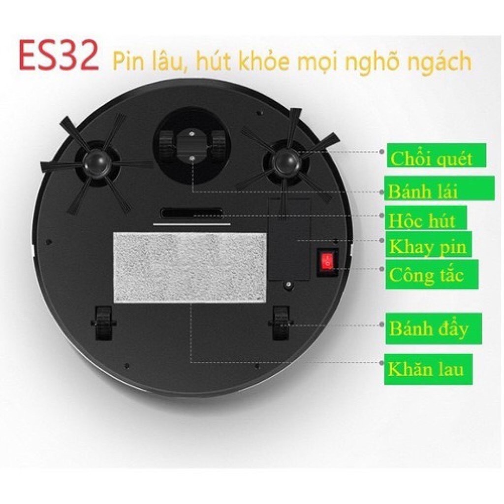 Robot Hút Bụi Thông Minh Thế Hệ Mới ES32 Siêu Mạnh Mẽ Tích Hợp Cảm Ứng Chạm 3 Chế Độ Quét-Hút-LauBạn cảm thấy mệt mỏi, chán ngấy công việc dọn dẹp nhà cửa hàng ngày vì nó lấy đi của bạn rất nhiều thời gian và công sức. Vậy thì robot hút bụi ES32 chính là giải pháp thông minh dành cho bạn giúp bạn tiết kiệm được công sức và tận hưởng trọn vẹn thời gian bên bạn bè, gia đình.