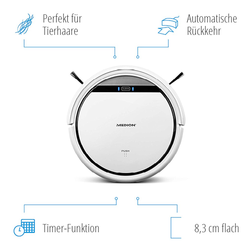 Thiết Bị Điện Gia Dụng > Thiết bị điện gia dụng nhỏ > Máy hút bụi & Thiết bị làm sạch sàn || [Mã 44ELSALE1 giảm 5% đơn 3TR] Robot hút bụi và lau nhà Medion MD19510Còn hàng