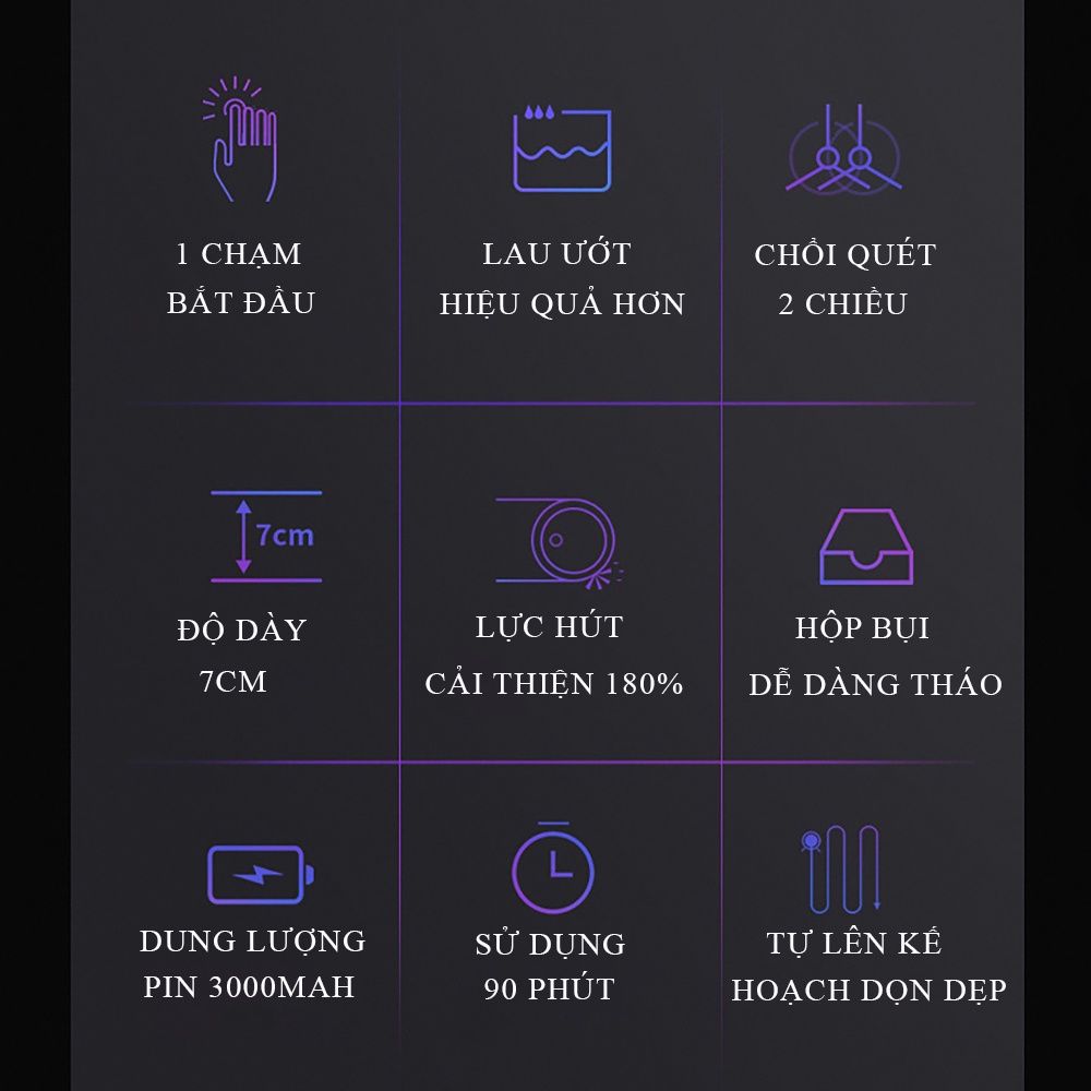 ►Robot hút bụi và lau sàn thông minh - Cảm ứng chạm, cảm biến vật cản, đèn led - Bảo hành 2 năm