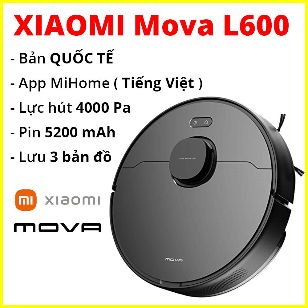 Thiết Bị Điện Gia Dụng > Thiết bị điện gia dụng nhỏ > Máy hút bụi & Thiết bị làm sạch sàn || Robot hút bụi XIAOMI MOVA L600 Quốc Tế - 4000pa - hút bụi lau nhà cực khỏe dreame D9 max, dreame D9 pro, mi robotCòn hàng