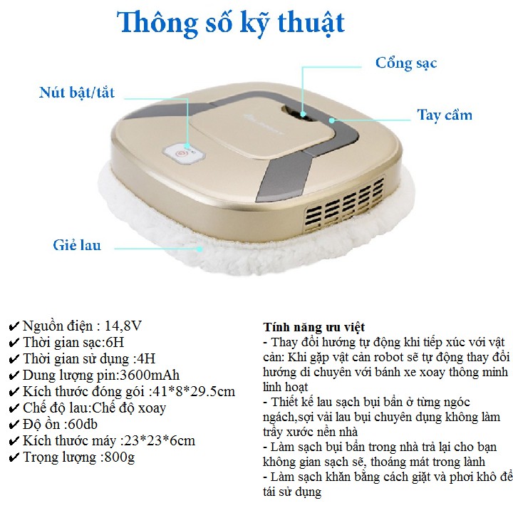 - Chế độ lau: Xoay mô phỏng lau tay,Chế độ lau sạch,chế độ lau ngẫu nhiên