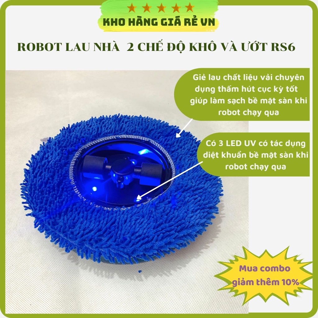 Robot lau nhà có đèn UV khử khuẩn nền nhà sử dụng pin sạc qua cổng USB an toàn tiện lợi model RS6 - hàng nội địa Trung có bảo hành. Sản phẩm này được mệnh danh là nhỏ mà có võ thuộc nhóm hàng bán chạy nhất trên các sàn thương mại điện tử nội địa Trung.Robot lau nhà RS6 được thiết kế xoay 360 độ mô phỏng chế độ lau tay làm sạch nền nhà bạn tự động chỉ với một nút nhấn. Trong thời gian máy hoạt động bạn tha hồ rảnh tay để làm công việc khác hoặc thư giãn nghỉ ngơi.