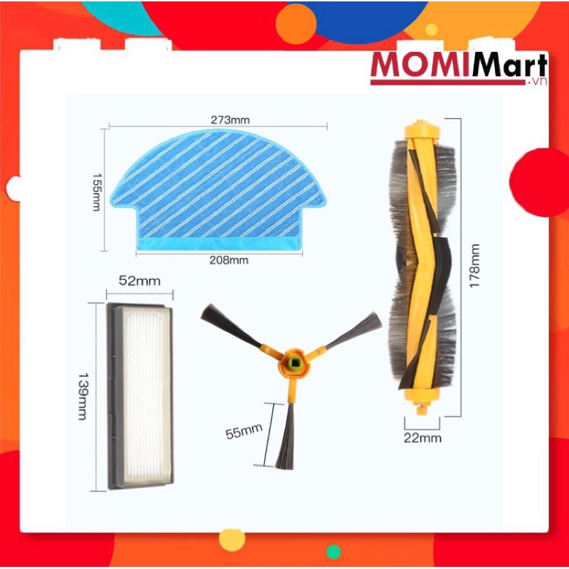 KHĂN LAU, CHỔI XOẮN, CHỔI VEN, LỌC HEPA ROBOT LAU NHÀ ECOVACS DJ35 - PHỤ KIỆN THAY THẾ ROBOT