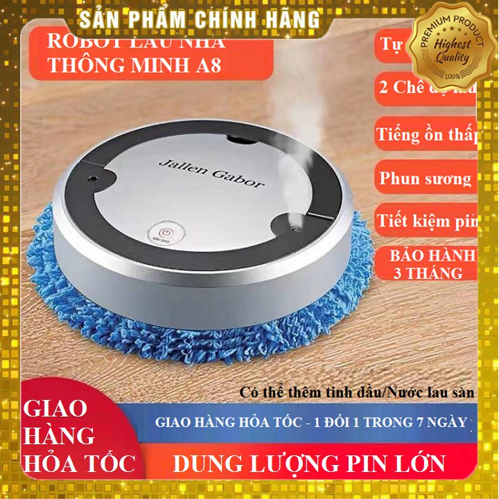 Robot lau nhà - Máy lau nhà tự động A8 tích hợp khuếch tán tinh dầu sử dụng pin sạc tiện lợi có bảo hành, làm sạch nhanh, hiệu quả tiết kiệm pinThông tin sản phẩm