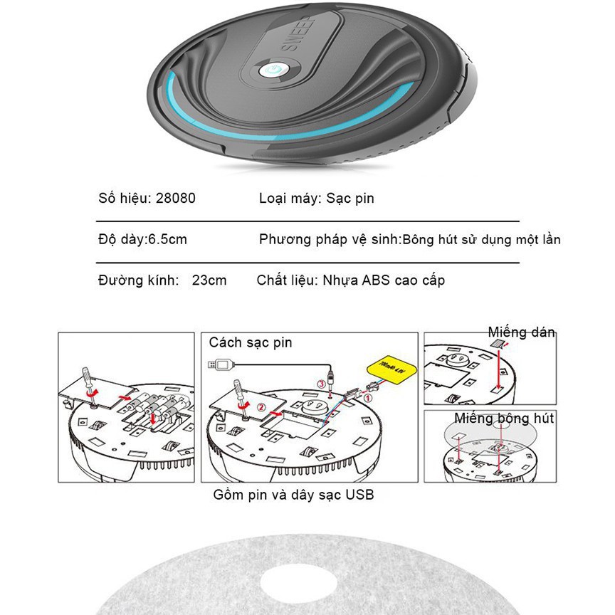 Robot lau nhà thông minh dọn dẹp chạy tự động xung quanh nhà để hấp thụ bụi bẩn với các mô sợi nhỏ dễ dàng hoạt động, không có thể bị ảnh hưởng bởi sự tắc nghẽn ,là một sản phẩm hoàn hảo cho những người không có thời gian quét nhà