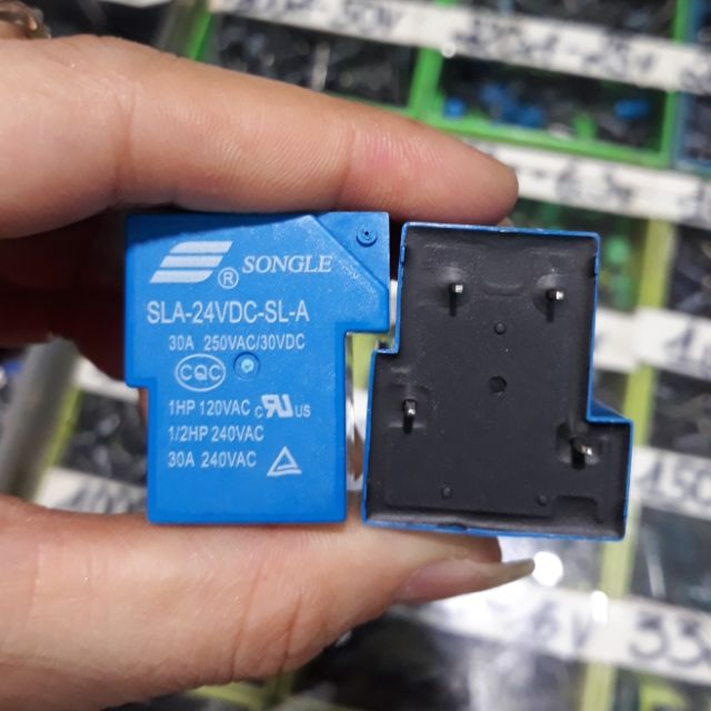Chân Màu XanhRelay songle SLA 24V 30A 4 chân là rơ le được dùng đểchuyển đổi điện của máy sưởi điện, máy điều hòa, các thiết bị điện gia đình