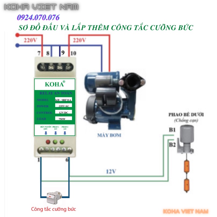 – Chức năng: bơm cạn hoặc bơm đầy (NO.NC).