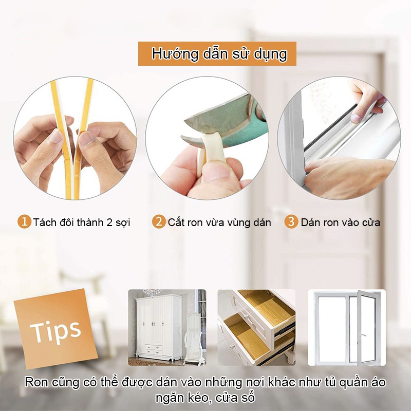 Ron Cao Su Chặn Khe Cửa, Miếng Chặn Dán Khung Cửa 2 Mét Loại 2 4 6mmTHÔNG TIN SẢN PHẨM THANH DÁN CỬA