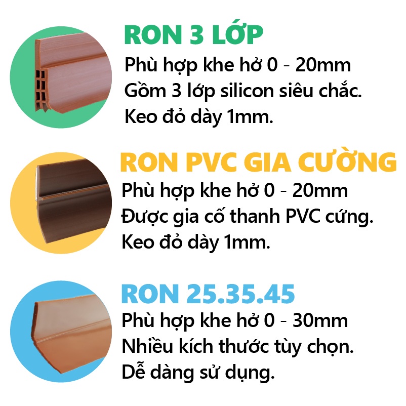 - RON PVC Phù hợp cho tất cả vị trí khe hở từ 0 - 22 mm